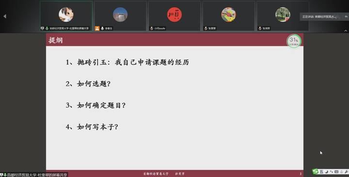 国民经济管理(劳动经济)系主任李春生老师邀请首都经济贸易大学经济学院副院长、博士生导师杜雯翠副教授做了以“如何实现国家级科研项目从0到1的突破”为主题的讲座。讲座以腾讯会议的形式进行,欧美色情片