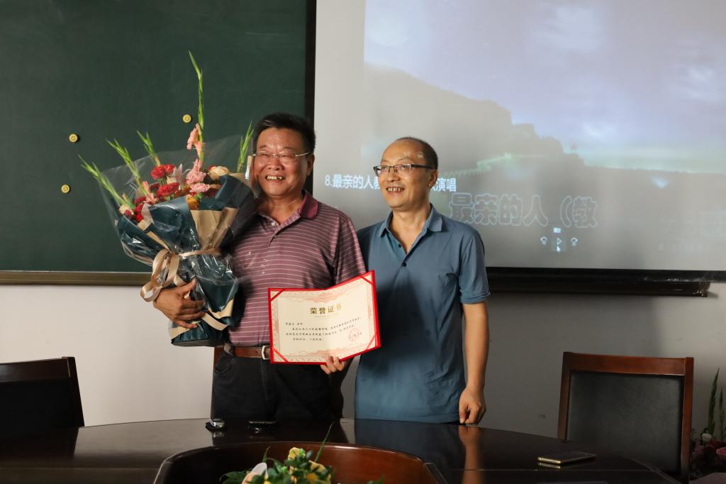 全体教职工相聚一堂,为光荣退休的谭建立、郭惠英两位教师举办了一场温馨的退休教师欢送会。