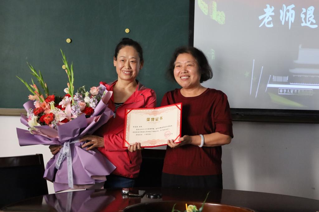 峥嵘岁月话感恩,不忘初心献余热。荣退仪式在工会主席赵左丽老师的主持下拉开帷幕。在欢快的乐曲和热烈的掌声中,两位新入职青年教师分别向谭老师、郭老师赠送鲜花,学院领导为谭老师、郭老师颁发了从教三十余年荣誉证书。学院党委书记高岳在致辞中回顾了两位教师三十余年的从教经历,对他们为学院学科发展、人才培养、专业建设等方面做出的贡献表示衷心感谢;两位教师作为学院、学科、专业发展的见证者和开拓者,他们筚路蓝缕、艰苦奋斗的精神和德高为师、身正为范的品质激励着后辈们砥砺前行;两位教师虽已退休,但仍是学院引以为傲的教师,“桑榆非晚,微霞满天”,希望他们能够“退休不退志、离岗不离心”,继续关心和支持学院工作,为学院发展建言献策,为立德树人发挥余热。