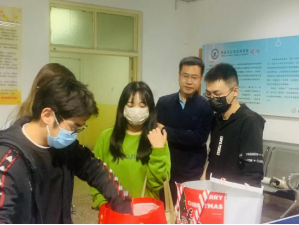为同学们发放了防疫物资,物资包括免洗凝胶和口罩。免洗凝胶每宿舍一瓶,用于日常手部清洁消毒。口罩每人五个,用于日常佩戴。在大家安静有序的领取中,物资很快就被送到了同学们的手上,发挥了各自的作用。